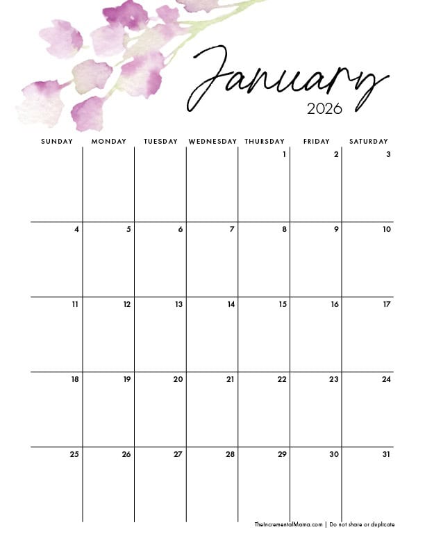 1 – Pretty Floral 2026 Monthly Calendars