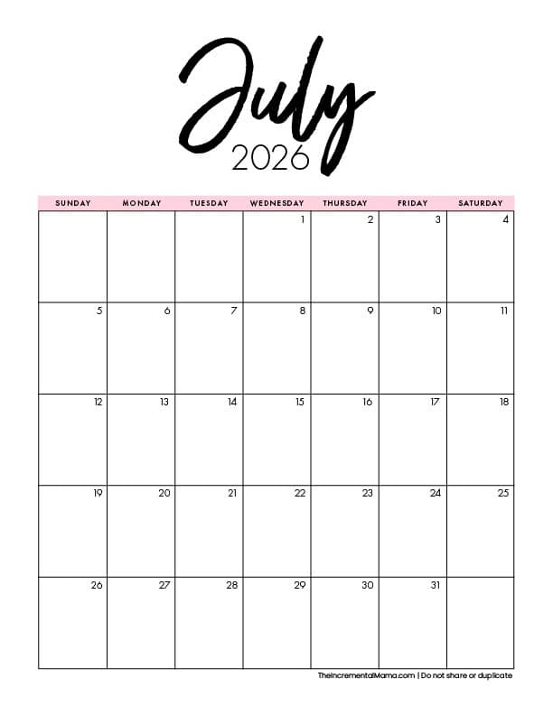 Need a yearly calendar? Click here for Free Printable One-Page 2026 Calendars.