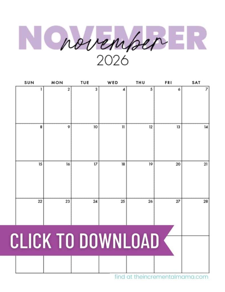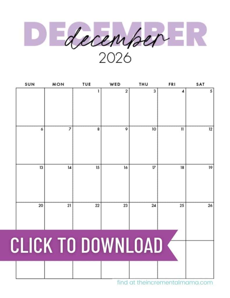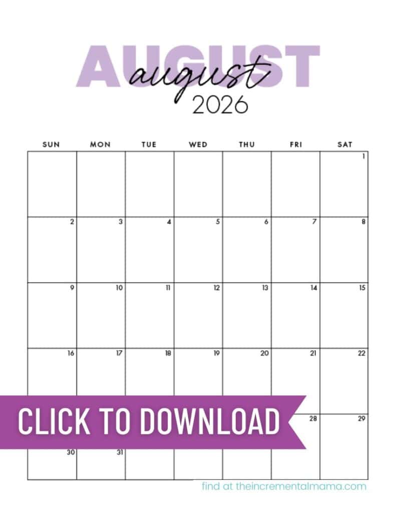 In addition to this soft lavender version, you can also download this same calendar design in teal, pink, or beige (plus several other 2026 calendar designs). Use just one, or mix colors throughout the year.