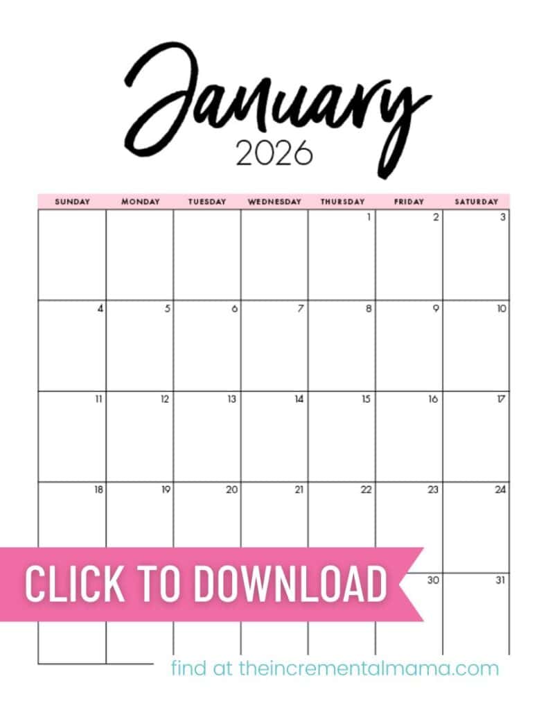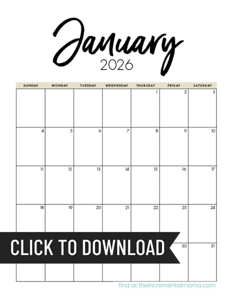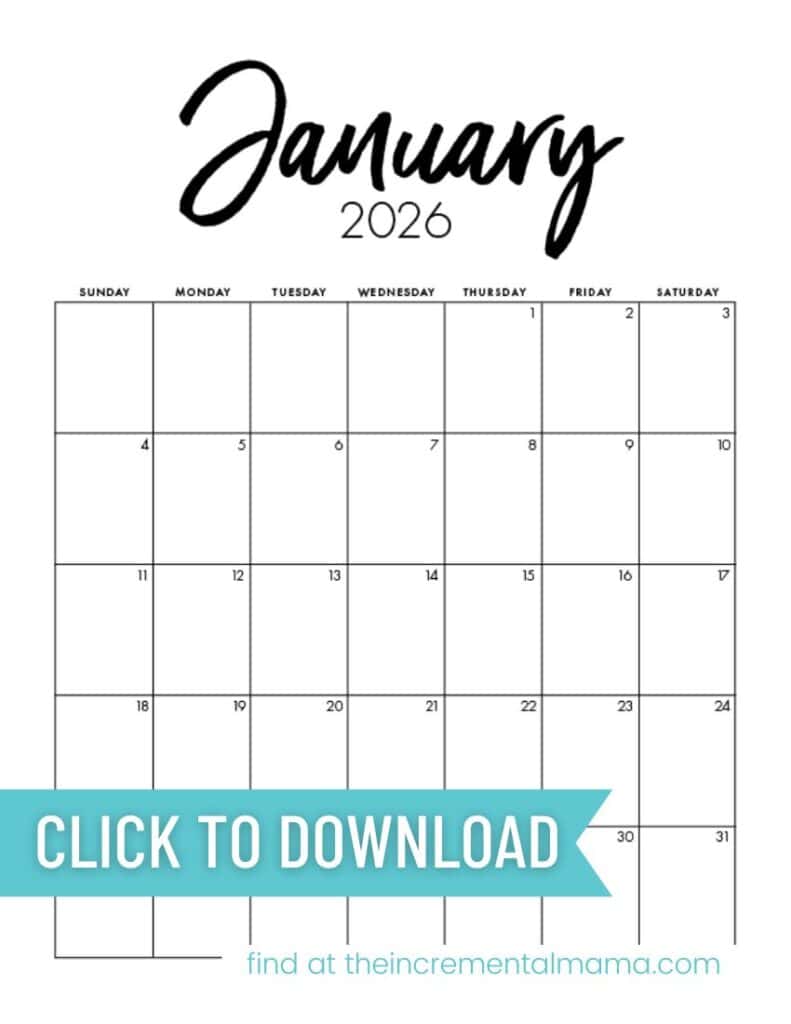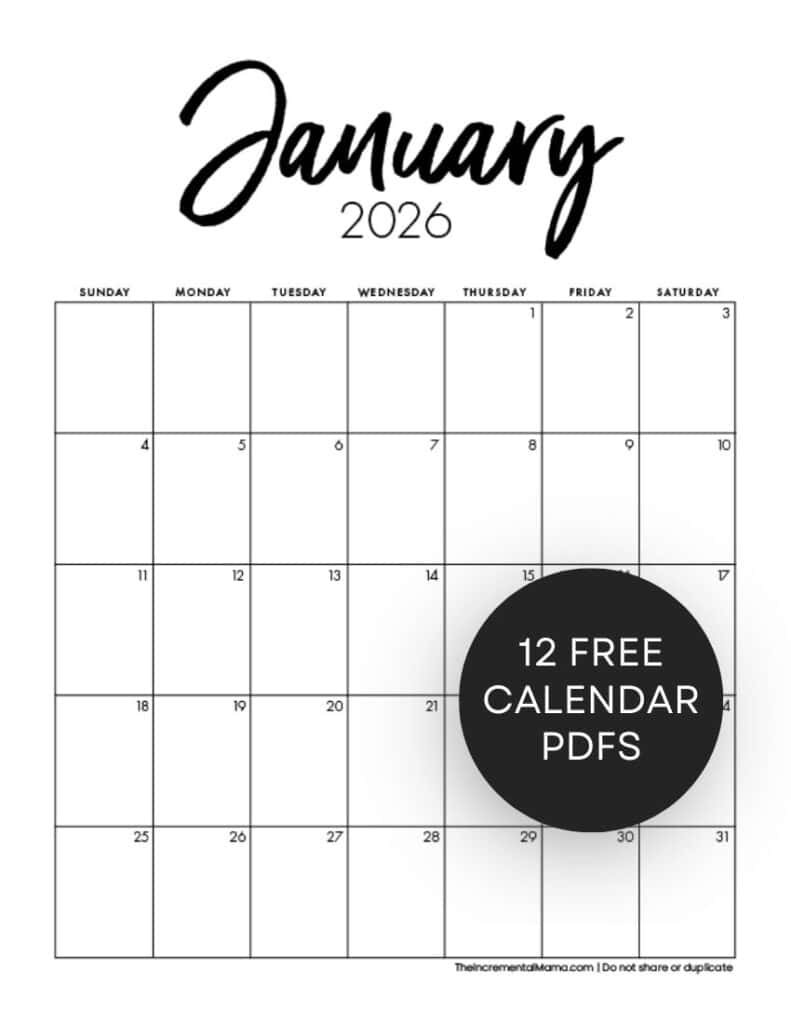 And to help you stay organized in 2026, I’ve created these awesome single page monthly calendar templates in a simple, clean design the you can get for free in this post. In this post, you’ll find the free calendars in 4 different versions: black and white, beige, teal, and pink.