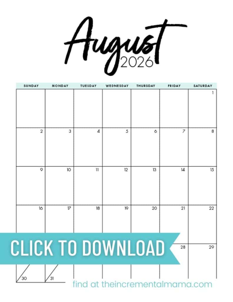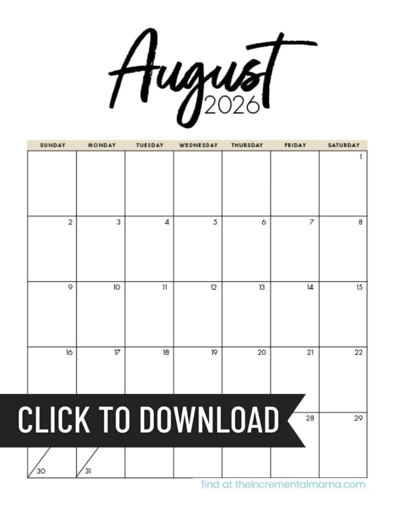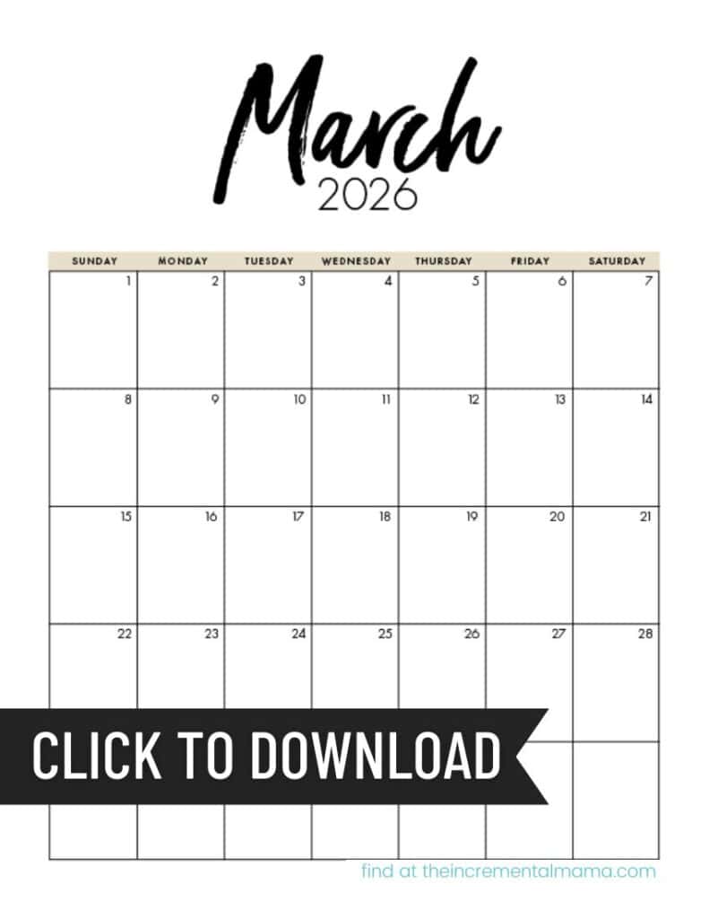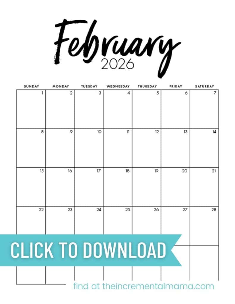 And to help you stay organized in 2026, I’ve created these awesome single page monthly calendar templates in a simple, clean design the you can get for free in this post. In this post, you’ll find the free calendars in 4 different versions: black and white, beige, teal, and pink.