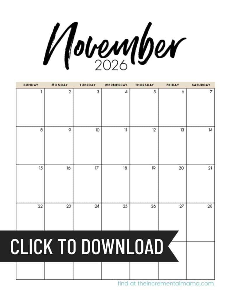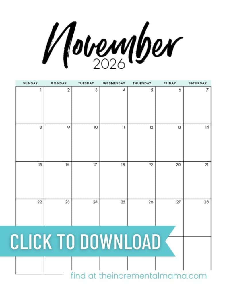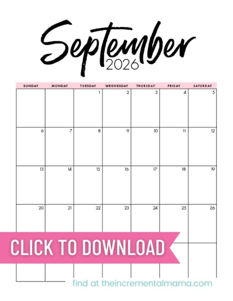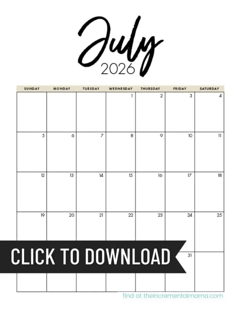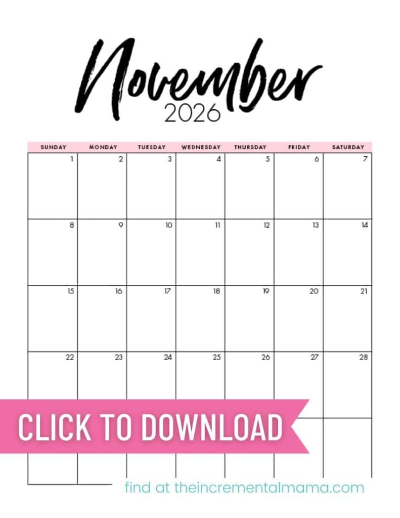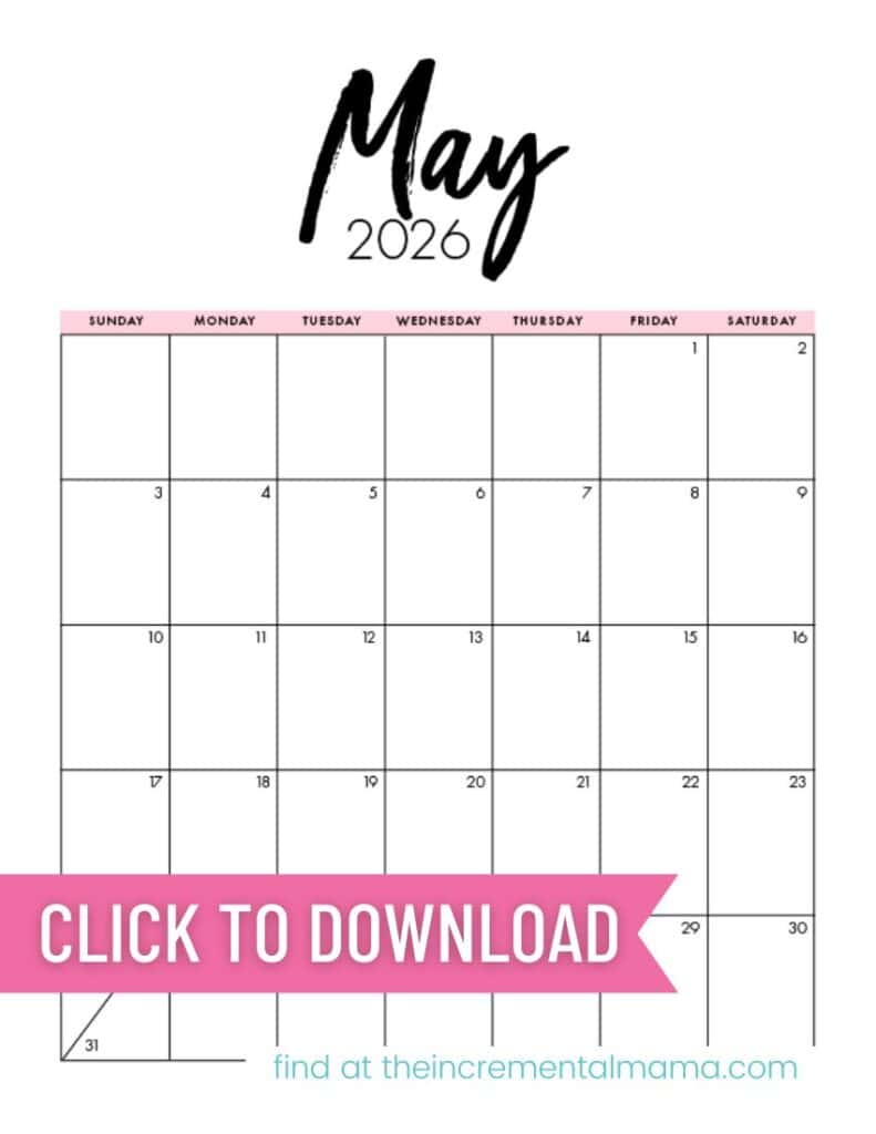 >>> Click here to see all other 2026 Calendar printable templates. These range from more monthly calendar designs to one-page yearly calendars.