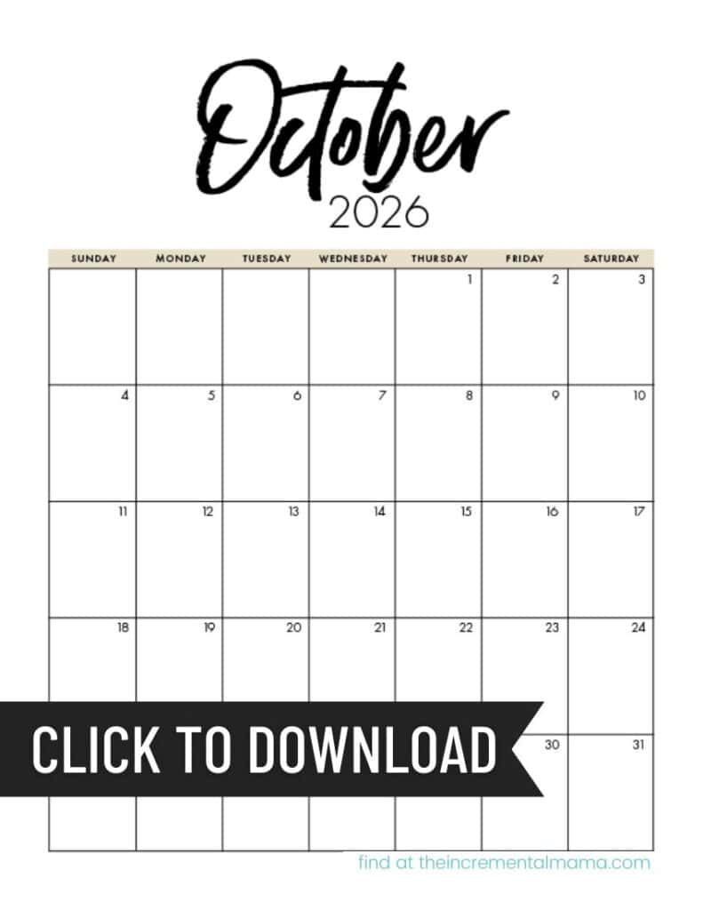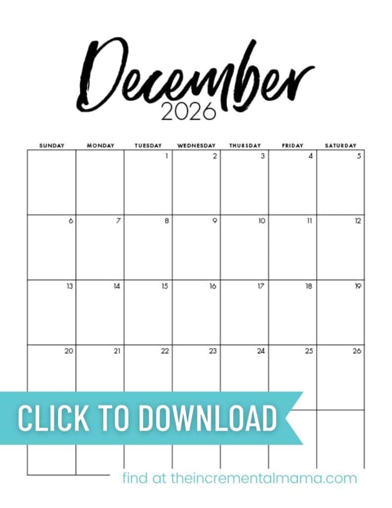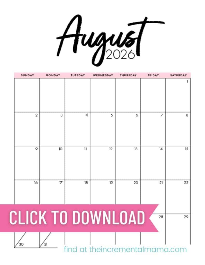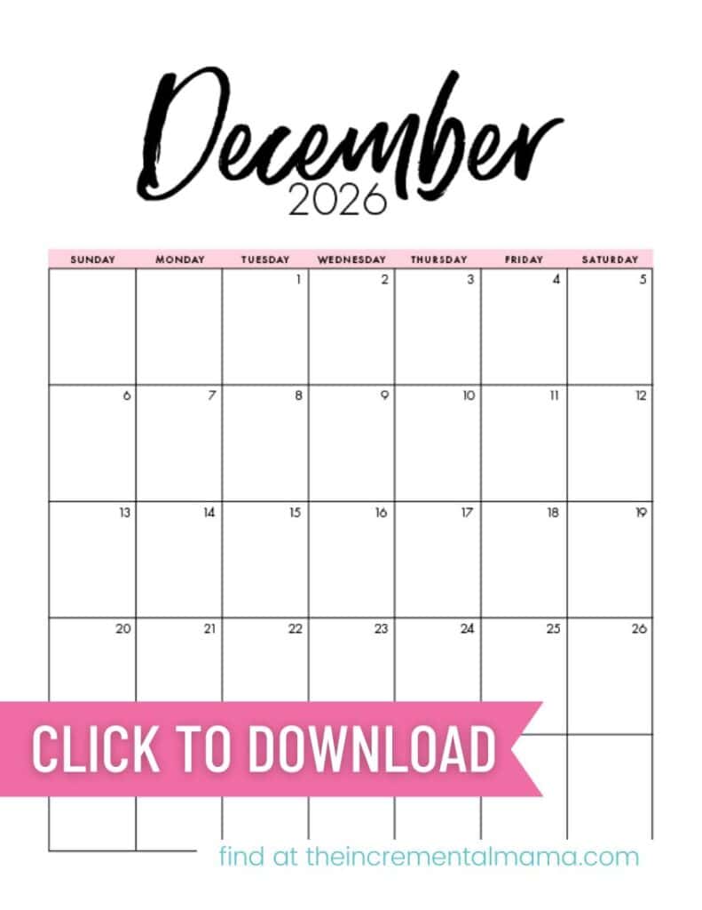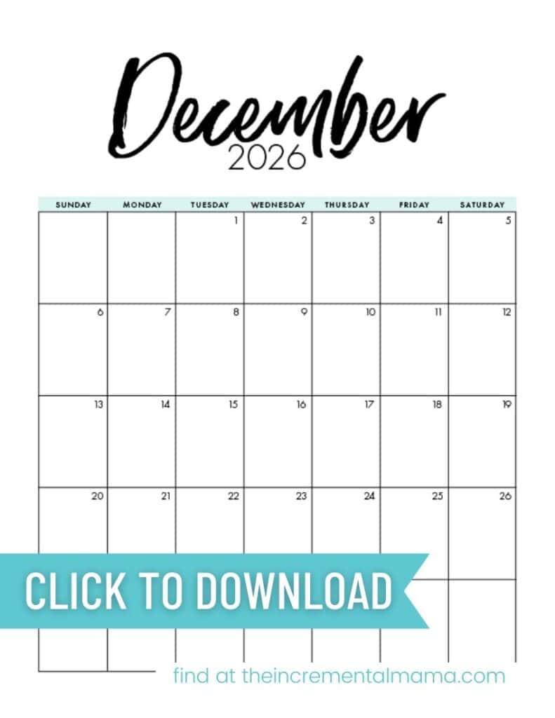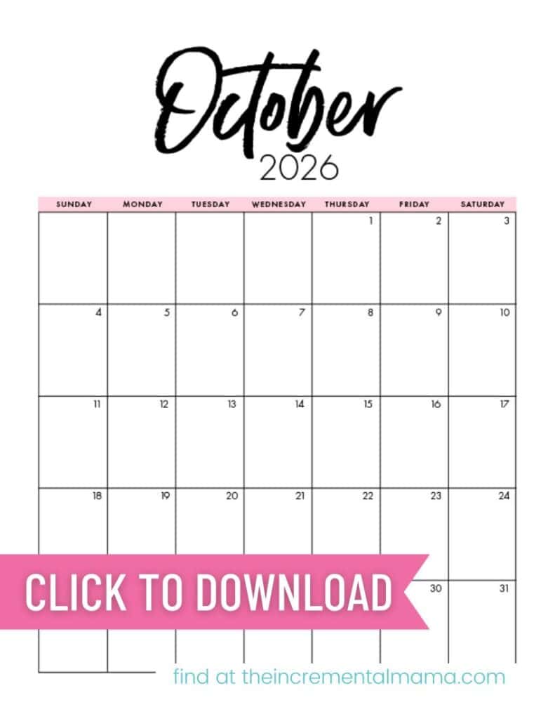 >>> Click here to see all other 2026 Calendar printable templates. These range from more monthly calendar designs to one-page yearly calendars.
