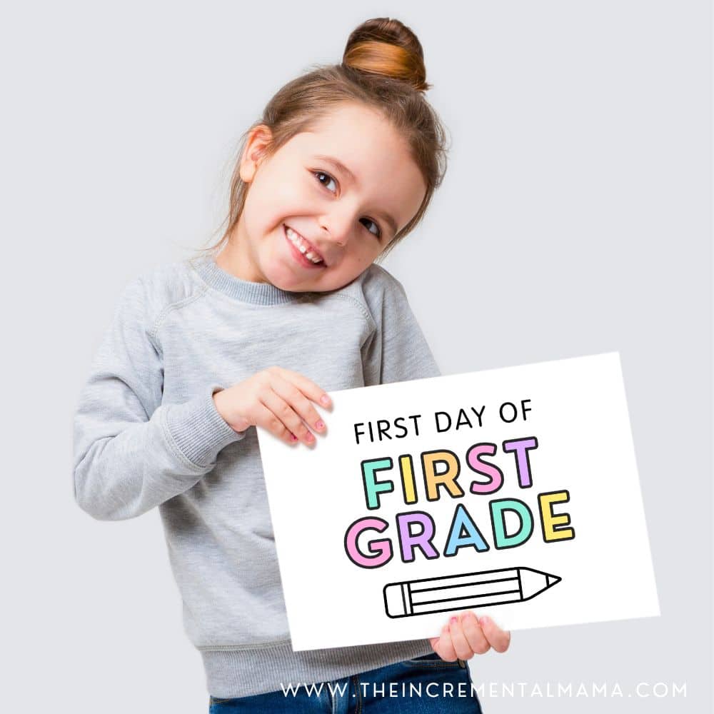 - Have your child hold the cute first day of school sign on their child’s first day, snap some photos, and share on social media if you’d like!